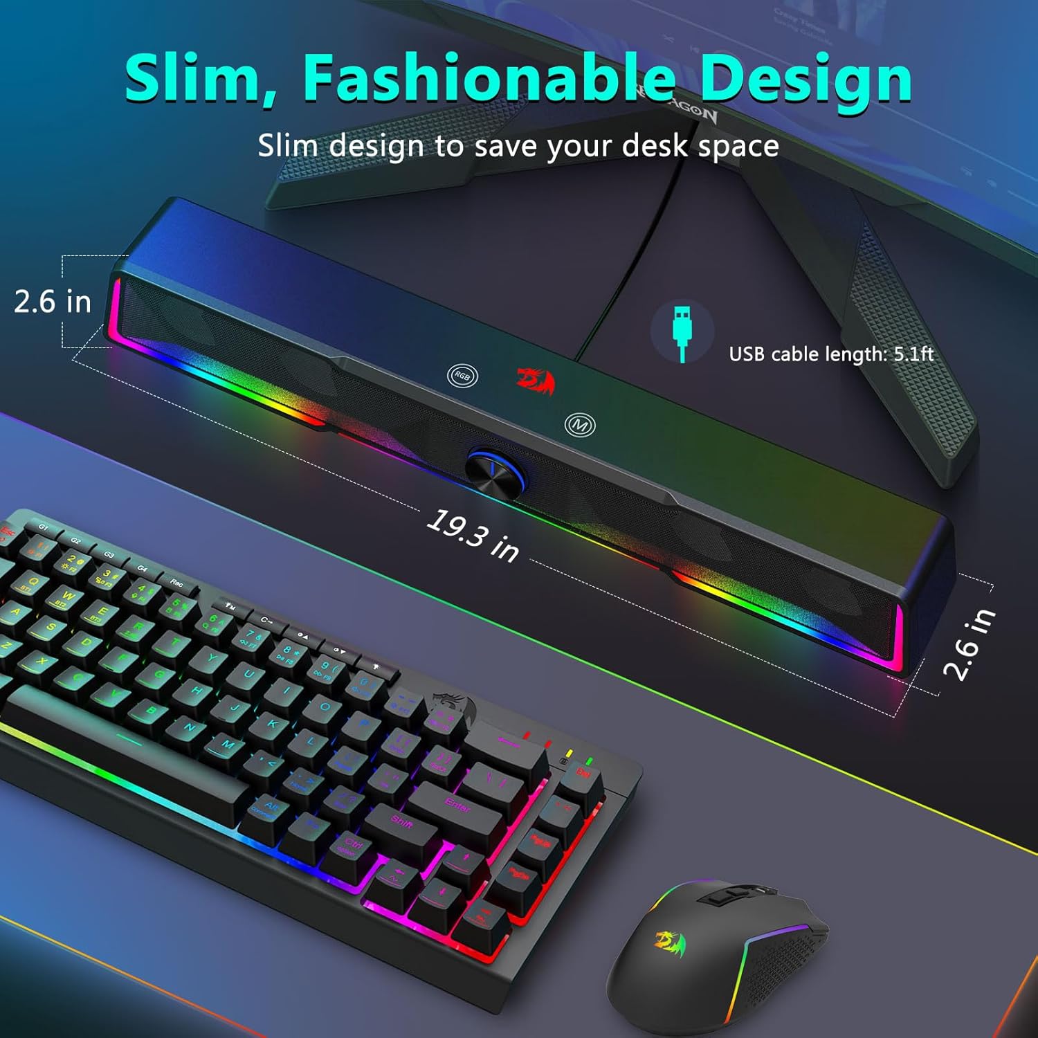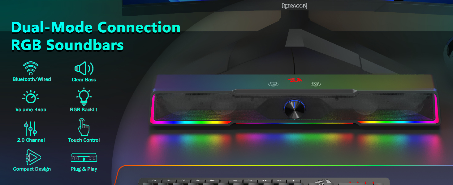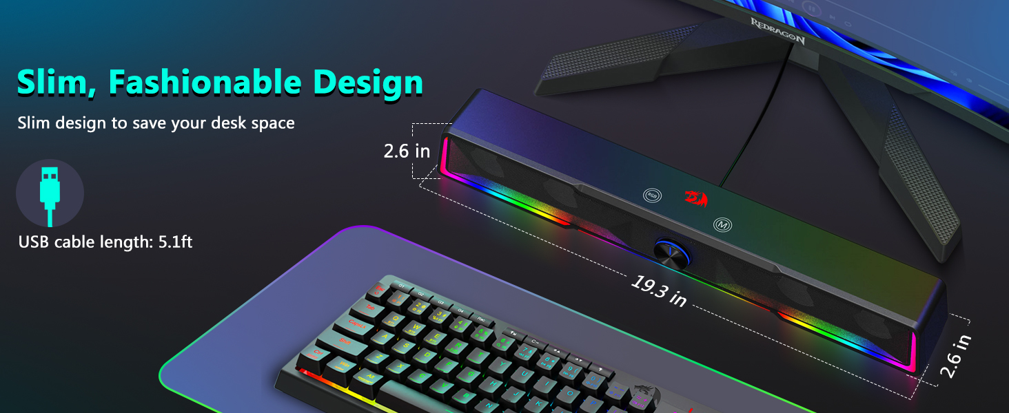 Σχεδιασμός Soundbar που εξοικονομεί χώρο Σε αντίθεση με τα παραδοσιακά ηχεία που καταλαμβάνουν μεγάλες περιοχές και στις δύο πλευρές μιας οθόνης, το ηχείο υπολογιστή με διακόπτη έντασης ήχου με ενσύρματη σύνδεση Bluetooth/USB Bluetooth GS516 διαθέτει μια λεπτή δομή ηχητικής γραμμής που ταιριάζει άνετα κάτω από τις περισσότερες οθόνες υπολογιστών. Αυτός ο συμπαγής σχεδιασμός βοηθά στη διατήρηση ενός καθαρού και οργανωμένου περιβάλλοντος γραφείου, ενώ παράλληλα προσφέρει πλούσιο και καθηλωτικό ήχο.