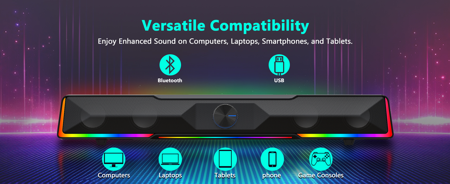 Συμβατότητα ευρείας συσκευής Το ηχείο υπολογιστή με ενσύρματη σύνδεση Bluetooth/USB Soundbar Volume Knob GS516 υποστηρίζει πολλές σύγχρονες συσκευές, καθιστώντας το μια ευέλικτη λύση ήχου για επιτραπέζιους υπολογιστές.