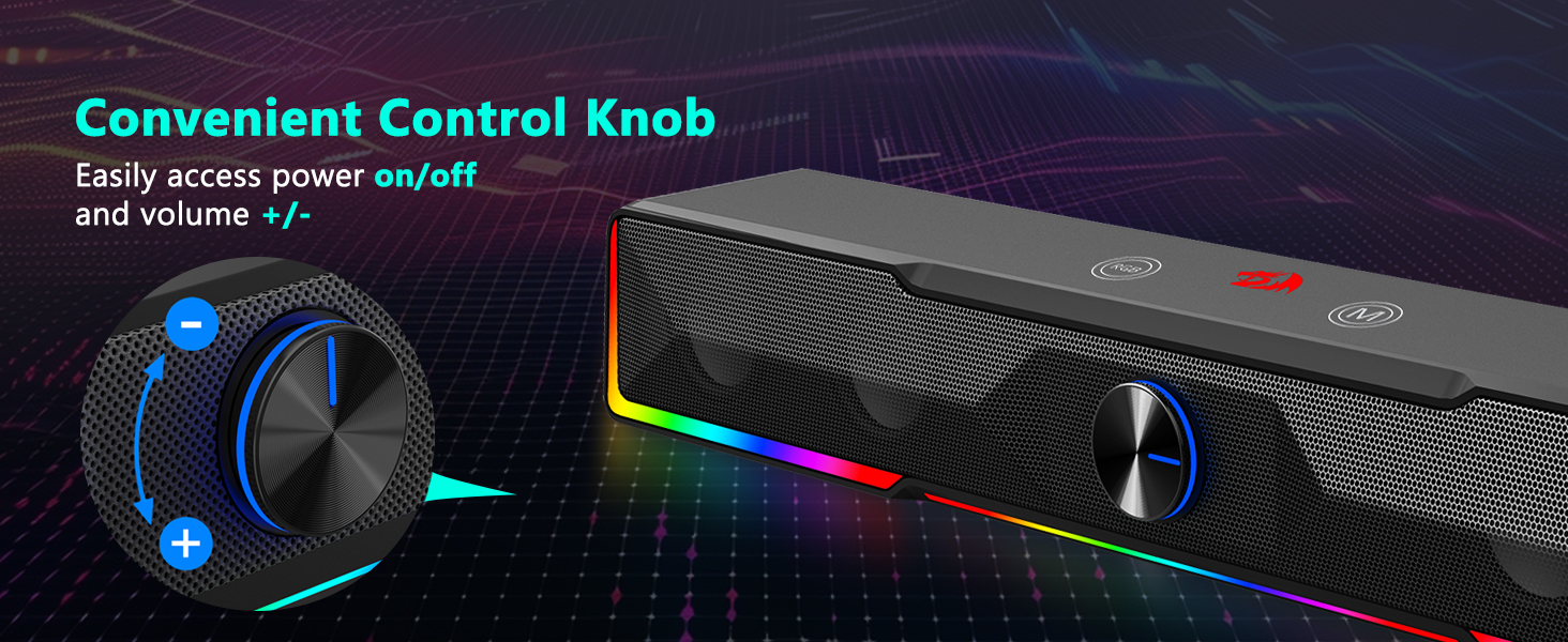 Ομαλός έλεγχος έντασης ήχου Το ενσωματωμένο κουμπί έντασης ήχου είναι ένα από τα πιο βολικά χαρακτηριστικά του Black GS516 Bluetooth/USB Wired Connection Soundbar Volume Knob Ηχείο υπολογιστή. Αντί να προσαρμόζουν τα επίπεδα ήχου μέσω των ρυθμίσεων του συστήματος, οι χρήστες μπορούν απλώς να περιστρέψουν το κουμπί για να αυξήσουν ή να μειώσουν την ένταση αμέσως. Αυτό το χειριστήριο αφής βελτιώνει τη χρηστικότητα κατά τη διάρκεια περιόδων παιχνιδιού, αναπαραγωγής μουσικής και βιντεοδιάσκεψης.