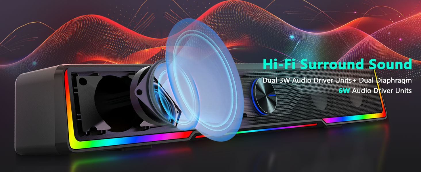 Στερεοφωνικός ήχος υψηλής ποιότητας Εξοπλισμένο με ισχυρά στερεοφωνικά προγράμματα οδήγησης, το ηχείο υπολογιστή με κουμπιά έντασης ήχου με ενσύρματη σύνδεση Bluetooth/USB Bluetooth GS516 προσφέρει ισορροπημένο ήχο με καθαρά φωνητικά, λεπτομερή μεσαία συχνότητα και βελτιωμένη απόκριση μπάσων. Το ηχείο έχει σχεδιαστεί για να παράγει καθηλωτικό ήχο για πολλούς τύπους περιεχομένου, συμπεριλαμβανομένων ταινιών, παιχνιδιών, podcast και μουσικής.