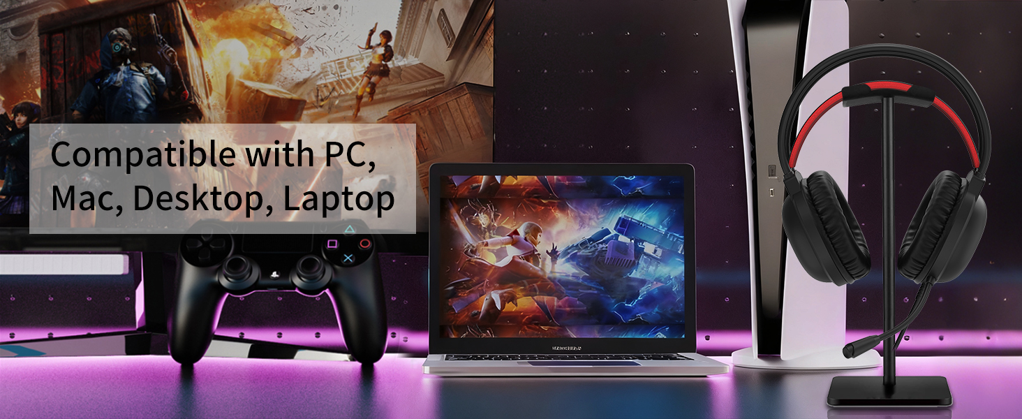 Αυτό το σετ μικροφώνου-ακουστικού είναι συμβατό με ένα ευρύ φάσμα συσκευών, συμπεριλαμβανομένων των κονσολών παιχνιδιών, των υπολογιστών, των φορητών υπολογιστών και των φορητών συσκευών που υποστηρίζουν τυπικές συνδέσεις ήχου.