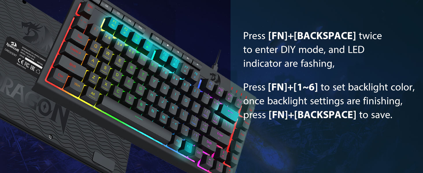 Αληθινός οπίσθιος φωτισμός RGB -Ο πλήρης δυναμικός οπίσθιος φωτισμός RGB επιτρέπει αμέτρητες δυνατότητες φωτισμού που περιορίζονται μόνο στη φαντασία σας. Το πληκτρολόγιο διαθέτει 8 προκαθορισμένες λειτουργίες φωτισμού και επιπλέον 6 υποδοχές για προσαρμόσιμες λειτουργίες. Η πλακέτα επιτρέπει επίσης έλεγχο φωτεινότητας, ο οποίος κυμαίνεται από πολύ φωτεινό έως εντελώς απενεργοποιημένο, εάν δεν χρειάζεστε τον φωτισμό.