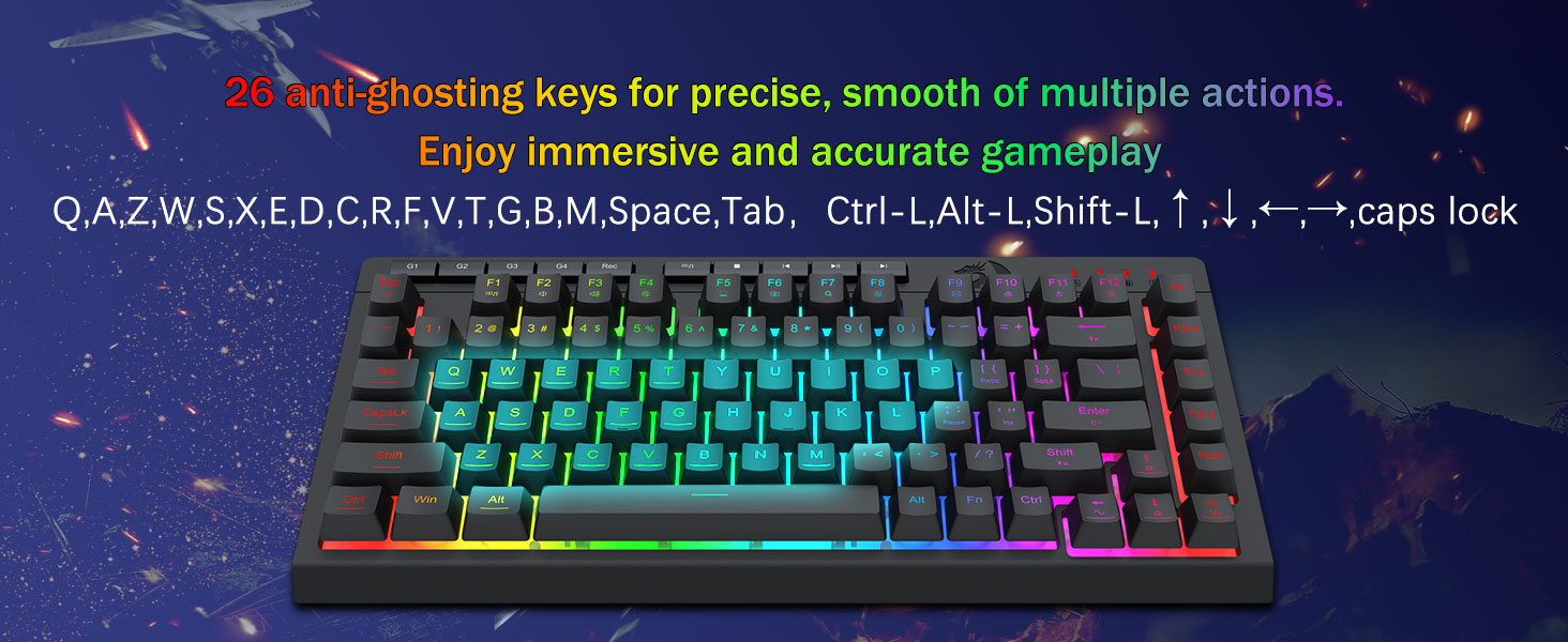 26 πλήκτρα Anti-ghost & Dedicated Media Control -Διαθέτει πλήκτρα anti-ghosting (πλήκτρα με κάτω παύλα) που επιτρέπουν την ταυτόχρονη λειτουργία 26 πλήκτρων για γρήγορες και ακριβείς αποκρίσεις παιχνιδιού με τον τρόπο που θέλατε. Τα ειδικά χειριστήρια πολυμέσων σάς επιτρέπουν να παίζετε, να κάνετε παύση και να παραλείπετε τα πολυμέσα απευθείας από το πληκτρολόγιο, ώστε το παιχνίδι σας να είναι ομαλό και αδιάκοπο.