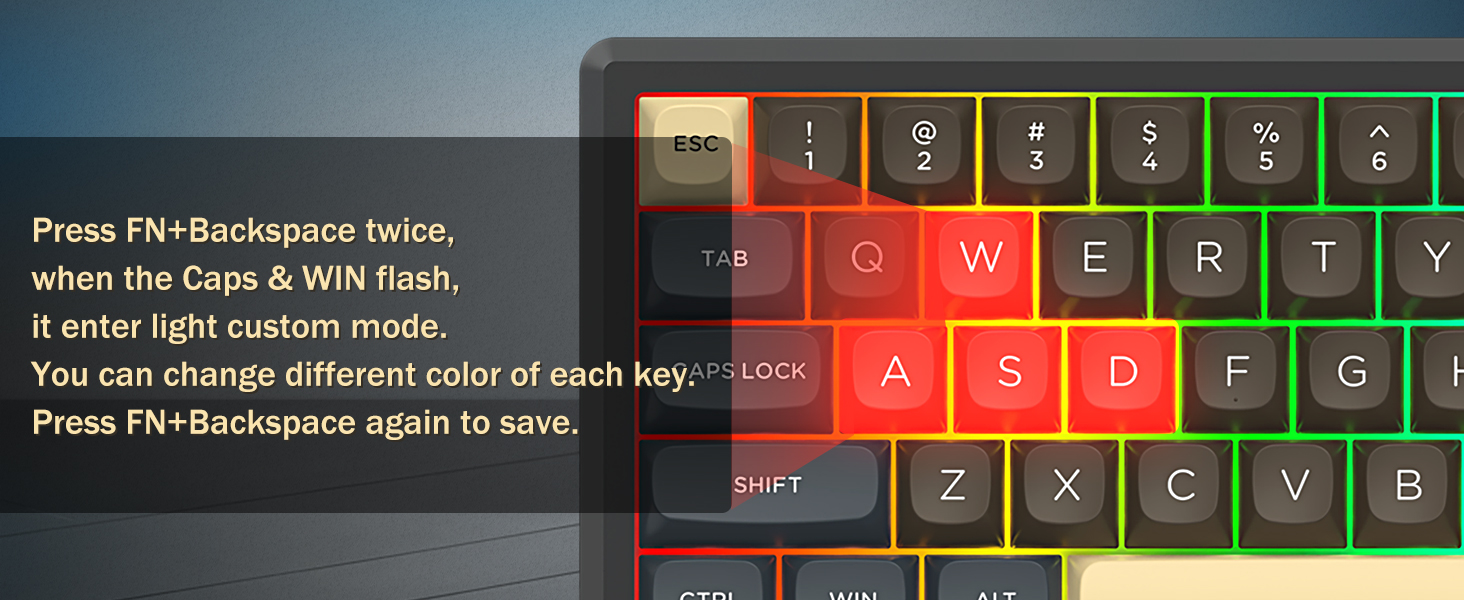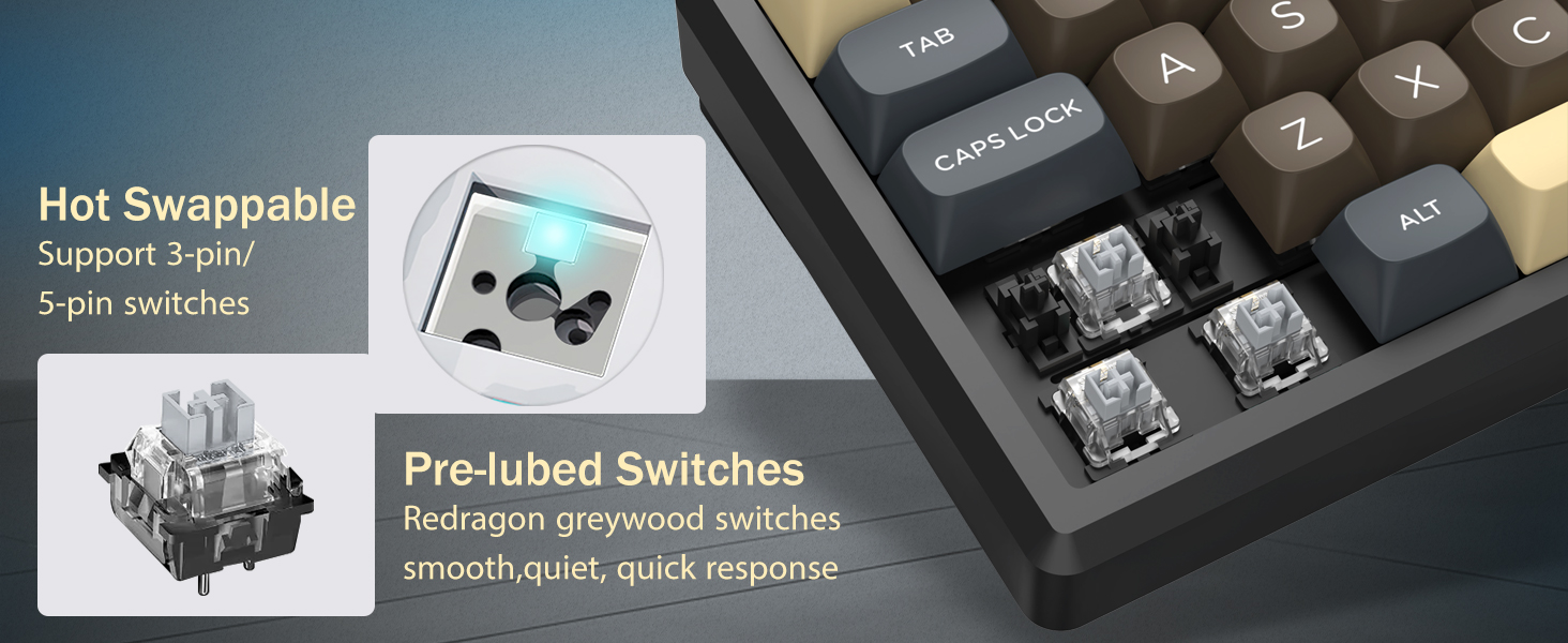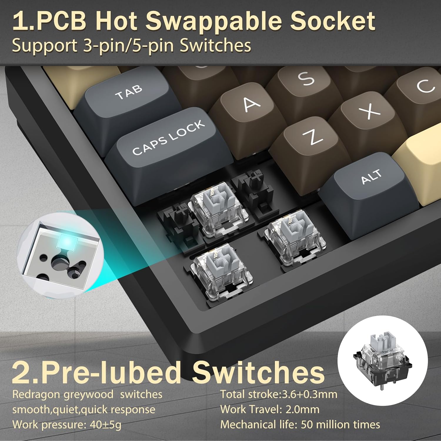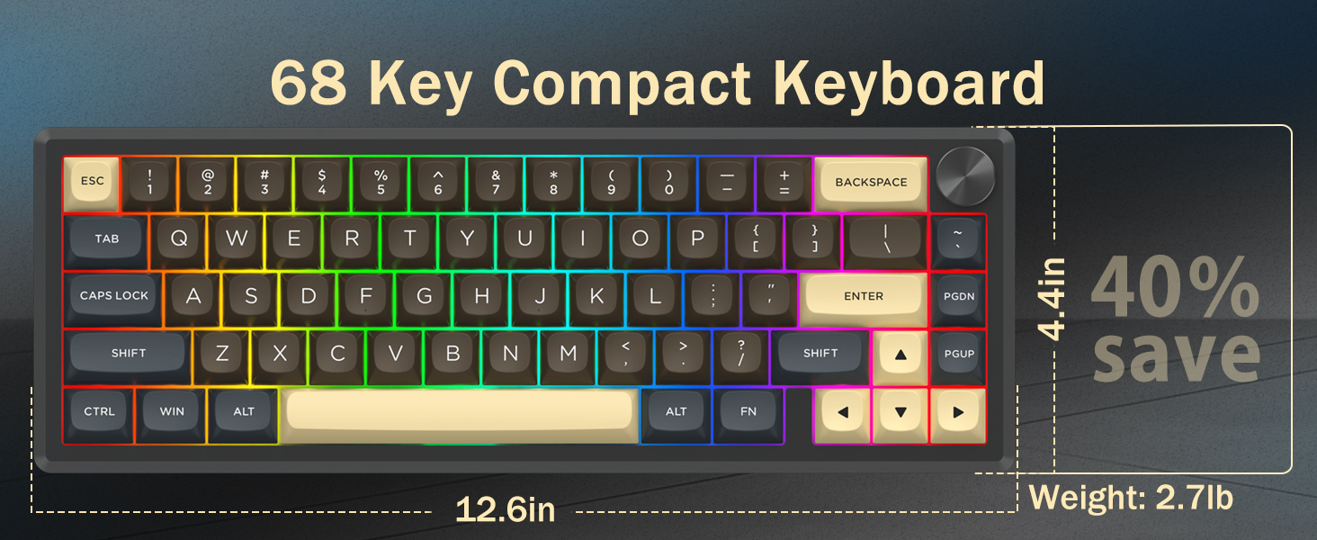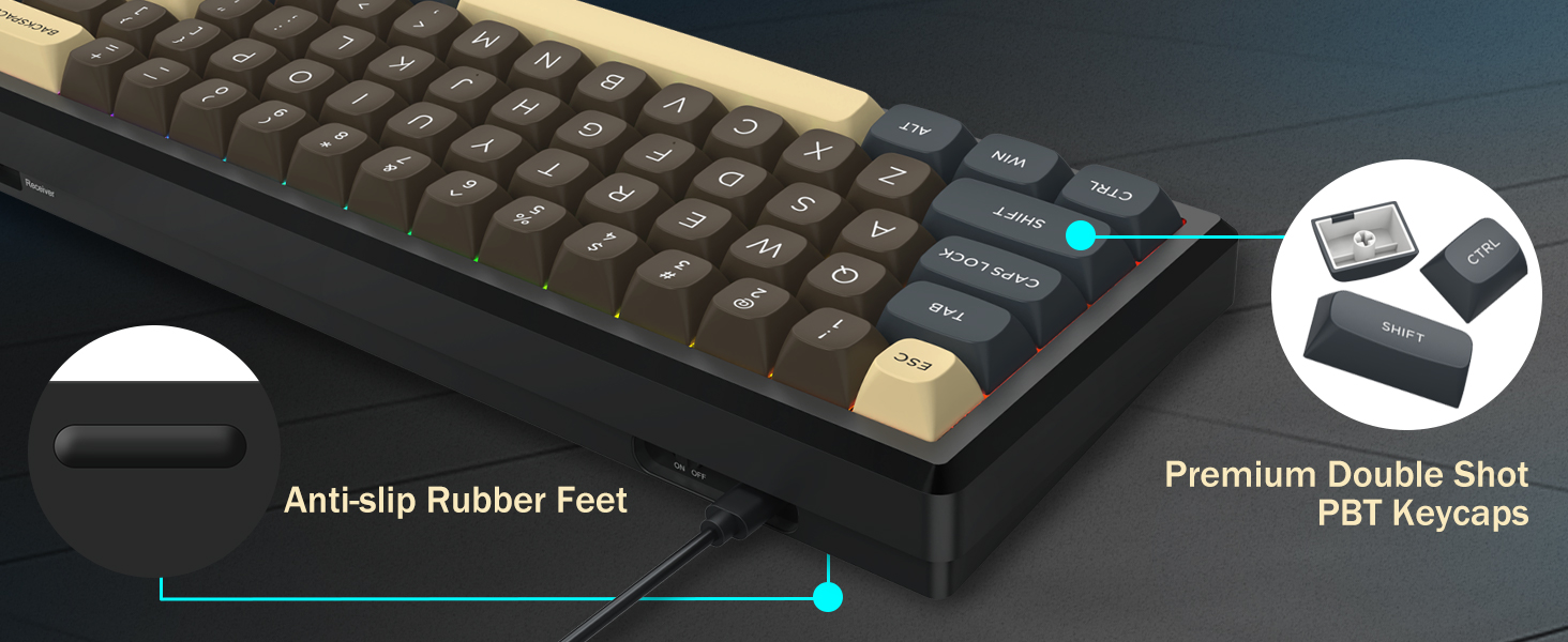 Με τη διάταξη του 60%, αυτό το πληκτρολόγιο αφαιρεί τα μη απαραίτητα πλήκτρα, ενώ διατηρεί τη βασική λειτουργικότητα μέσω συνδυασμών πλήκτρων. Αυτός ο σχεδιασμός συμβάλλει στη μείωση της ακαταστασίας στο γραφείο και παρέχει περισσότερο χώρο για την κίνηση του ποντικιού, καθιστώντας το κατάλληλο τόσο για περιβάλλον παιχνιδιού όσο και για περιβάλλον παραγωγικότητας.