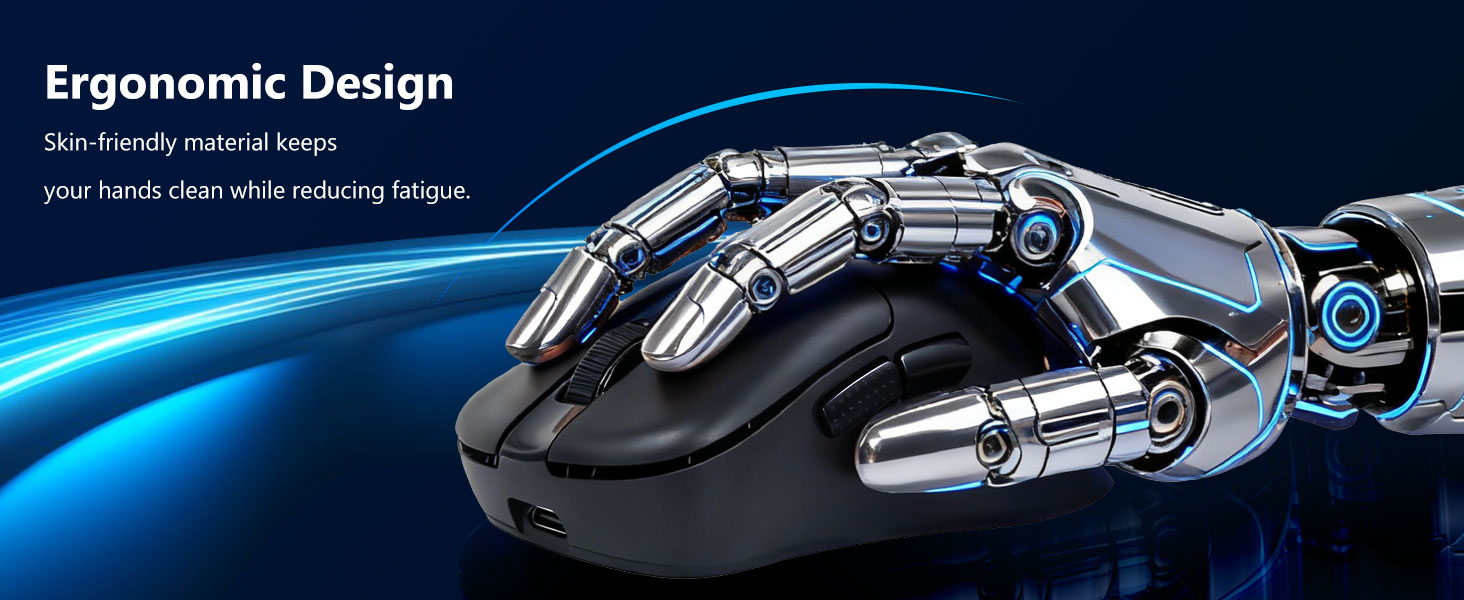 Το ποντίκι είναι διαμορφωμένο για να υποστηρίζει τη φυσική τοποθέτηση των χεριών, προσαρμόζοντας διαφορετικά στυλ λαβής. Αυτό βοηθά στη μείωση της κόπωσης κατά την παρατεταμένη χρήση.