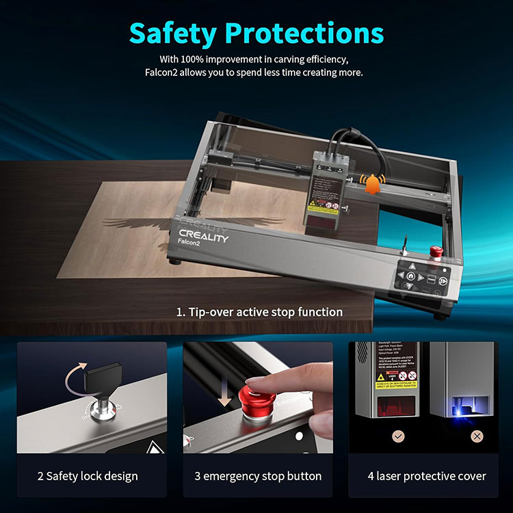 · Εξαιρετικά γρήγορη μηχανή χαράκτη λέιζερ:Η μέγιστη ταχύτητα επεξεργασίας της Creality Falcon2 μπορεί να φτάσει στην παραγωγικότητα των 25000mm/λεπτού. Με 2x ταχύτερη ταχύτητα χάραξης, μπορείτε να ολοκληρώσετε το έργο σας χάραξης γρήγορα και καλά.