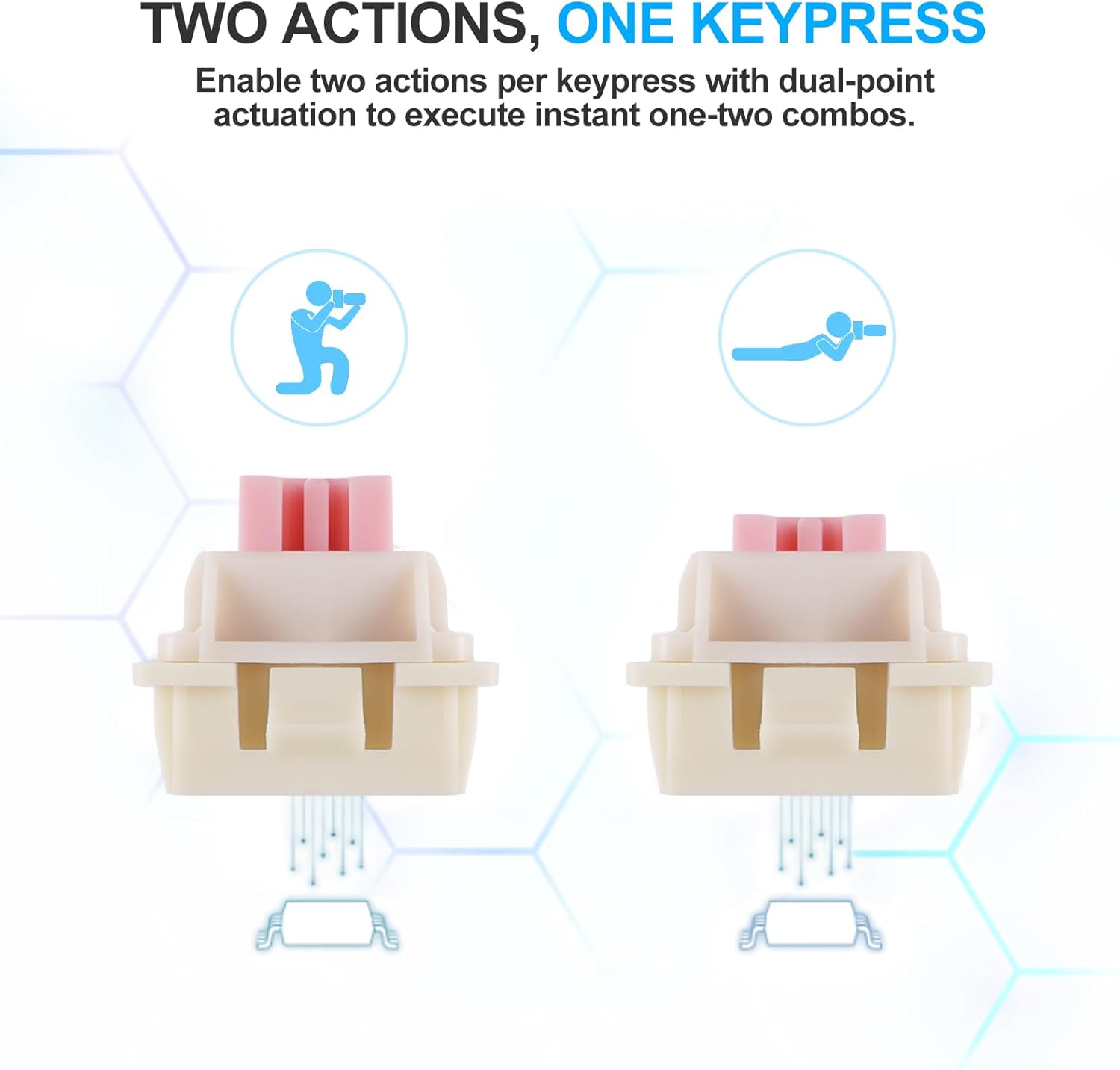 Α: Η γρήγορη ενεργοποίηση επιτρέπει στα πλήκτρα να επαναφέρονται αμέσως μετά την απελευθέρωση, επιτρέποντας ταχύτερες επαναλαμβανόμενες εισόδους. Αυτό βελτιώνει την ανταπόκριση σε παιχνίδια που απαιτούν γρήγορες αντιδράσεις και ακριβή χρονισμό.