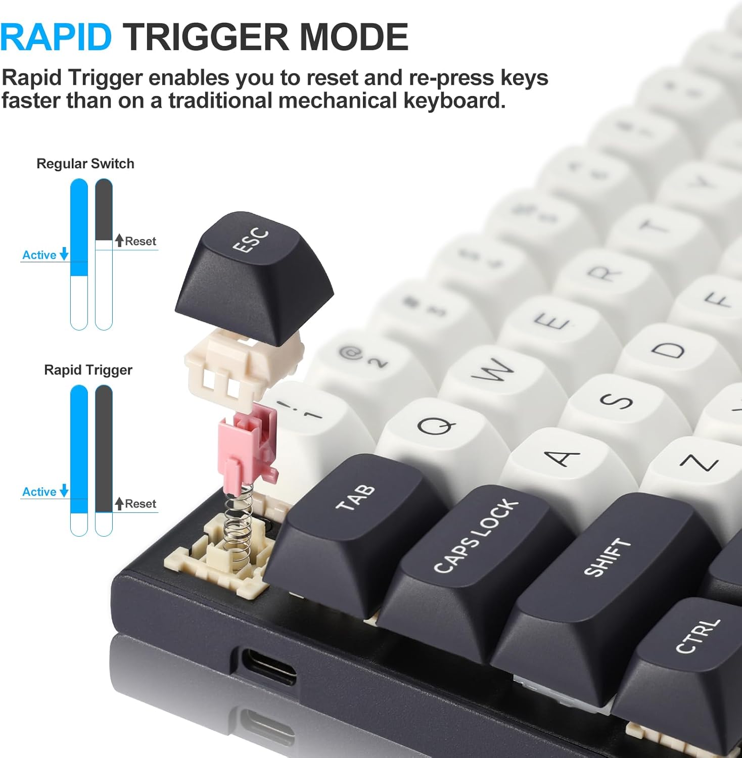 Η λειτουργία ταχείας ενεργοποίησης επιτρέπει στα πλήκτρα να επαναφέρονται άμεσα όταν απελευθερωθούν, αντί να περιμένουν για ένα σταθερό σημείο επαναφοράς. Αυτό επιτρέπει ταχύτερα επαναλαμβανόμενα πλήκτρα και πιο ακριβή έλεγχο, ιδιαίτερα χρήσιμο σε ανταγωνιστικά σενάρια παιχνιδιών, όπως FPS ή παιχνίδια που βασίζονται σε ρυθμό.