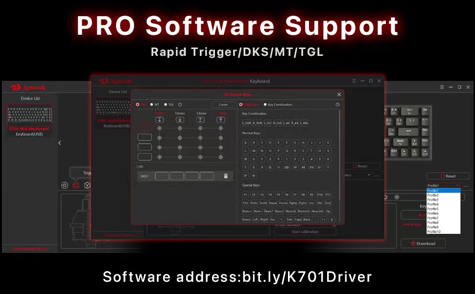 Το Λευκό/Μπλε-Μαύρο K701 Rapid Trigger 60% Wired Magnetic Switch Mechanical Gaming Keyboard προσφέρει μια εμπειρία πληκτρολόγησης με απόκριση που προσαρμόζεται στις διαφορετικές προτιμήσεις του χρήστη. Τα ρυθμιζόμενα σημεία ενεργοποίησης επιτρέπουν στους χρήστες να ρυθμίζουν με ακρίβεια την ευαισθησία με βάση τις ανάγκες τους.