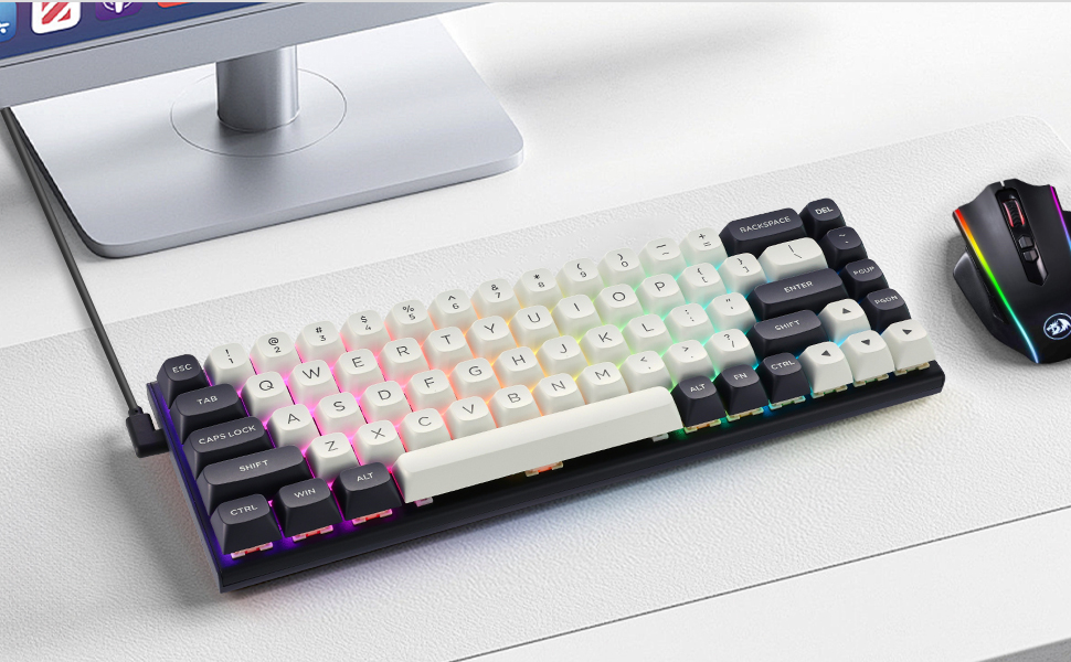 Αυτό το πληκτρολόγιο εστιάζει στην παροχή γρήγορης ενεργοποίησης, σταθερών πλήκτρων και καθαρού σχεδιασμού που ταιριάζει τόσο σε gaming όσο και σε επαγγελματικές ρυθμίσεις. Η διάταξή του κατά 60% αφαιρεί τα περιττά πλήκτρα διατηρώντας παράλληλα τη βασική λειτουργικότητα, επιτρέποντας στους χρήστες να μεγιστοποιήσουν τον χώρο στο γραφείο και να διατηρήσουν αποτελεσματικό έλεγχο κατά τη διάρκεια του παιχνιδιού.