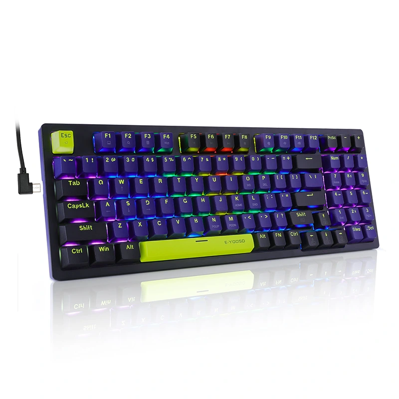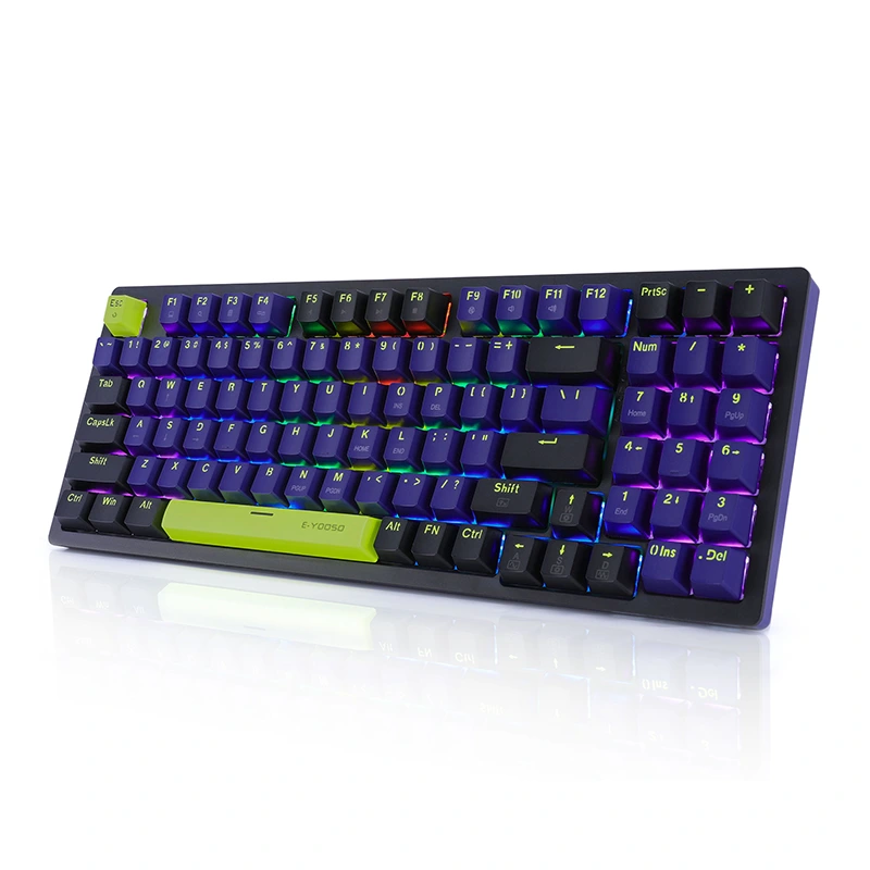 2. 2.Εξαιρετικός κόκκινος διακόπτης και διακόπτης bule: Το μηχανικό πληκτρολόγιο E-OOSO χρησιμοποιεί rRed Switch και bule Switch, διάρκεια ζωής 50 εκατομμυρίων πλήκτρων, Απόσταση από την ενεργοποίηση 2,0 mm, δύναμη ενεργοποίησης 45 g. Το PCB σάς επιτρέπει να αντικαθιστάτε ελεύθερα διακόπτες 3 ακίδων χωρίς πρόβλημα συγκόλλησης